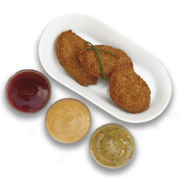 Carne de pollo sabor suave empanado clasico